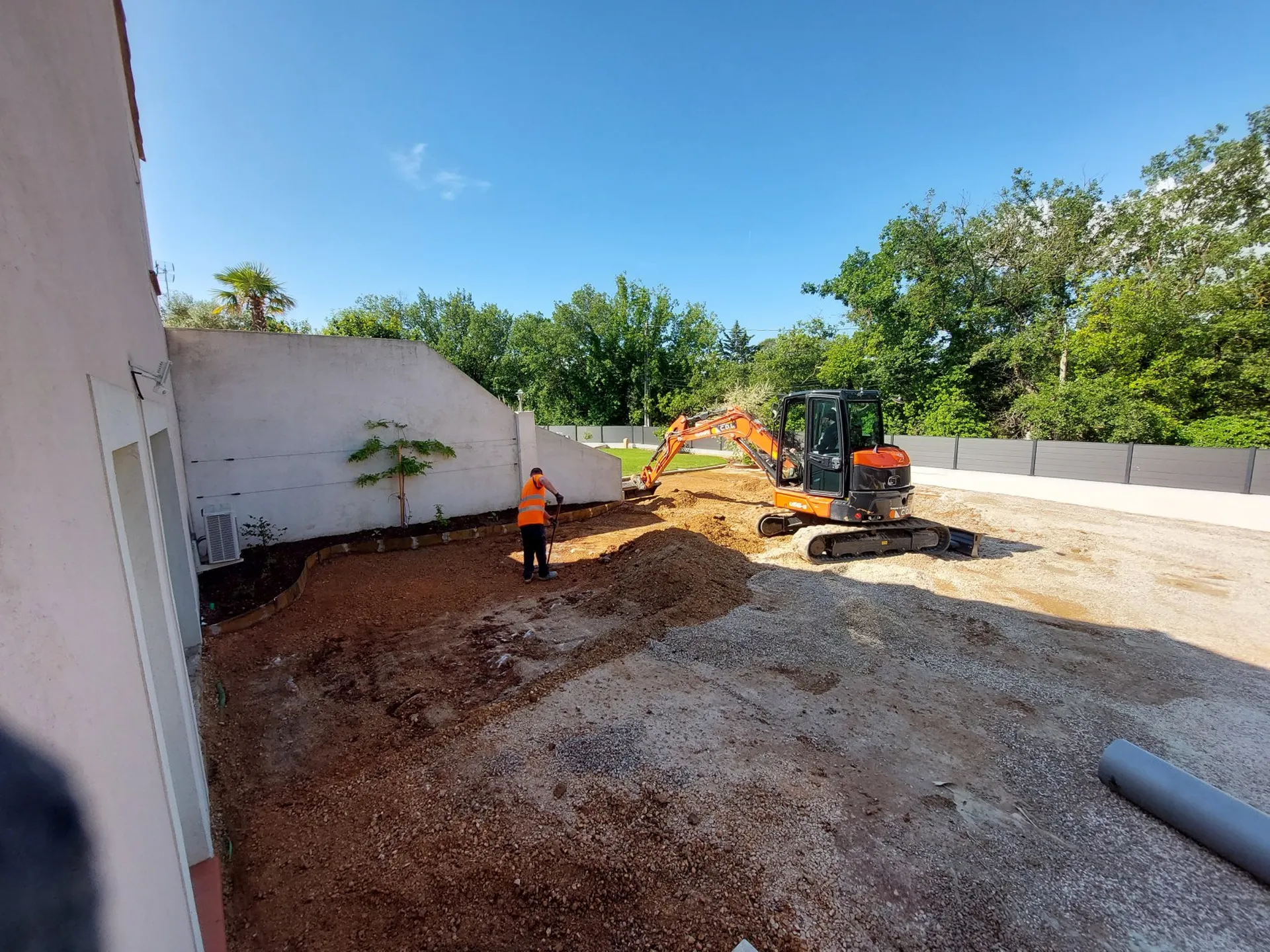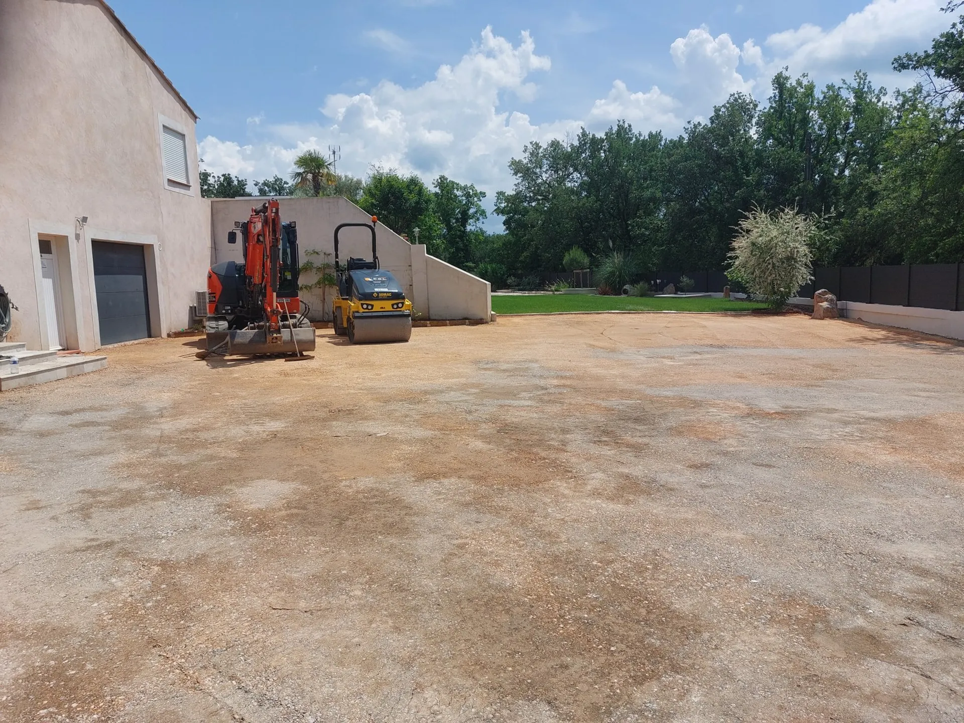 Nous avons réglé le support et crée les pentes d'écoulement des eaux en apportant de la GNT puis compacté.