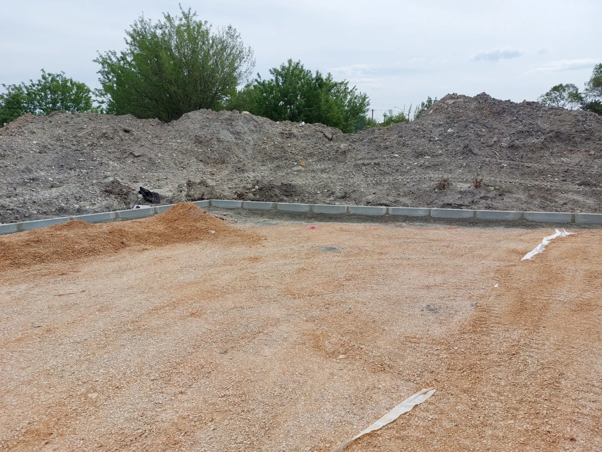 Afin de délimiter la surface du parking, nous avons posé des bordures T2. Enfin après validation du maître d'œuvre nous avons mis en œuvre un enrobé de bitume noir avec un finisseur.